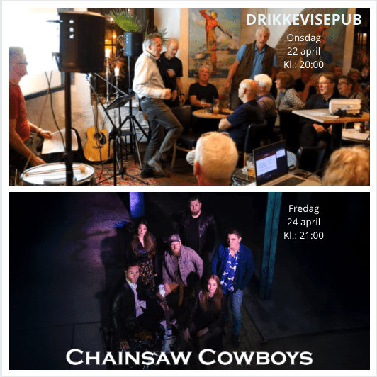 Ukens konserter på Café Magenta BILLETTER Chainsaw Cowboys Onsdag 22. april er det dags for ny DRIKKEVISEPUB. Vi samles for å ha allsang med gode gamle drikkeviser, med tekst på skjerm. Man kan gjerne kombinere konserten med et måltid før start. Kjøkkenet er åpent til kl. 19. Ring 69 32 00 12 for bordbestilling […]